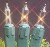 Set of 100 Clear Mini Lights-100 bulbs. Indoor/Outdoor Use. End-to-end. Spacing 3" x 6" x 3". Set Length 50' UL approved to allow three sets to be connected. 2.5V/170mA bulbs. Exclusive light-lock and twist proof bulbs. Green Wire. Professional Grade