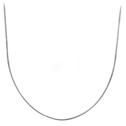 This light and slim 1mm round sterling silver chain is made up of tight interlocking foxtail links that give it a delicate texture and a smooth feel. The 16-inch chain has a bright polished shine and is finished with a spring ring clasp. It's perfect for showing off a small pendant.